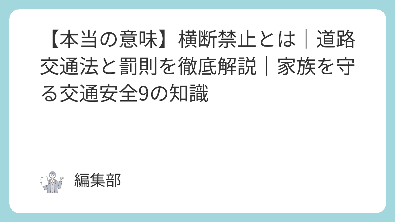 - 横断禁止は道路交通法に基づき、重大な事故を未然に防ぐための必須ルール