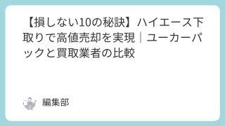 「事業の相棒であるハイエースを買い替えたいが、できる限り高く売却したい」と、あなたは考えていませんか? 事業主であるあなたにとって、次の車両購入資金を少しでも多く確保することは重要です。この記事では、ユーカーパックの活用を軸に、あなたのハイ...
